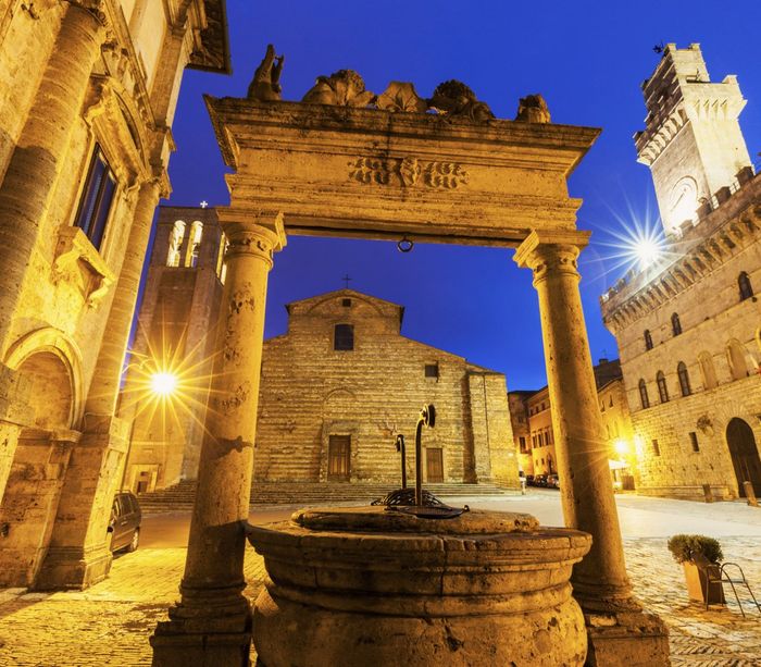 Montepulciano è costruita lungo una stretta cresta di calcare, ad un'altezza dal livello del mare di 605 metri. Montepulciano è conosciuto principalmente per l'imponenza dei suoi palazzi rinascimentali, per l'elegante bellezza delle sue chiese e per il "Vino Nobile", uno dei vini toscani più apprezzati a livello internazionale. Monumenti di particolare interesse sono il Duomo eretto tra il 1582 e il 1630. All’interno opere di Taddeo di Bartolo, e la Chiesa di San Biagio isolata in mezzo alla campagna: l'edificio, summa degli studi rinascimentali sulla pianta a croce greca applicata agli edifici di culto cattolici, fu realizzata da Antonio da Sangallo il Vecchio.