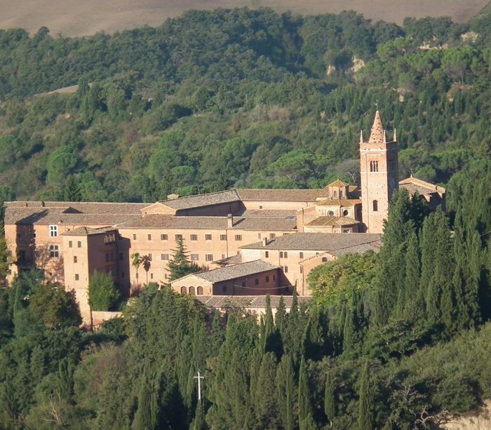L'Abbazia benedettina di Monte Oliveto Maggiore è sita tra Buonconvento ed Asciano e si colloca centralmente a quel territorio detto delle Crete Senesi. L'Abbazia, dall'aspetto decisamente monumentale e dalle dimensioni considerevoli,sorge su un’altura ed è immersa in un verde che dona una profonda sensazione di pace. Al suo interno di notevole interesse è il chiostro grande completamente affrescato da Luca Signorelli con le "Storie di San Benedetto", e dal Sodoma. Nella chiesa di impianto quattrocentesco, rifatta nel ‘700 in forme barocche, troviamo un magnifico coro ligneo.